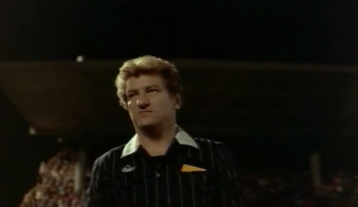 Or, Jean-Pierre Mocky adopte le point de vue de l’homme en noir : Maurice Bruno (Eddy Mitchell, photo) qui rêve d’une carrière internationale dirige un match décisif pour l’accession en Coupe d’Europe des « Jaunes et Noirs », l’équipe locale du soir. Malheureusement pour elle, un penalty brise ses ambitions. Il coûte surtout très cher au jeune Bruno qui s’attire les foudres des supporters vaincus.