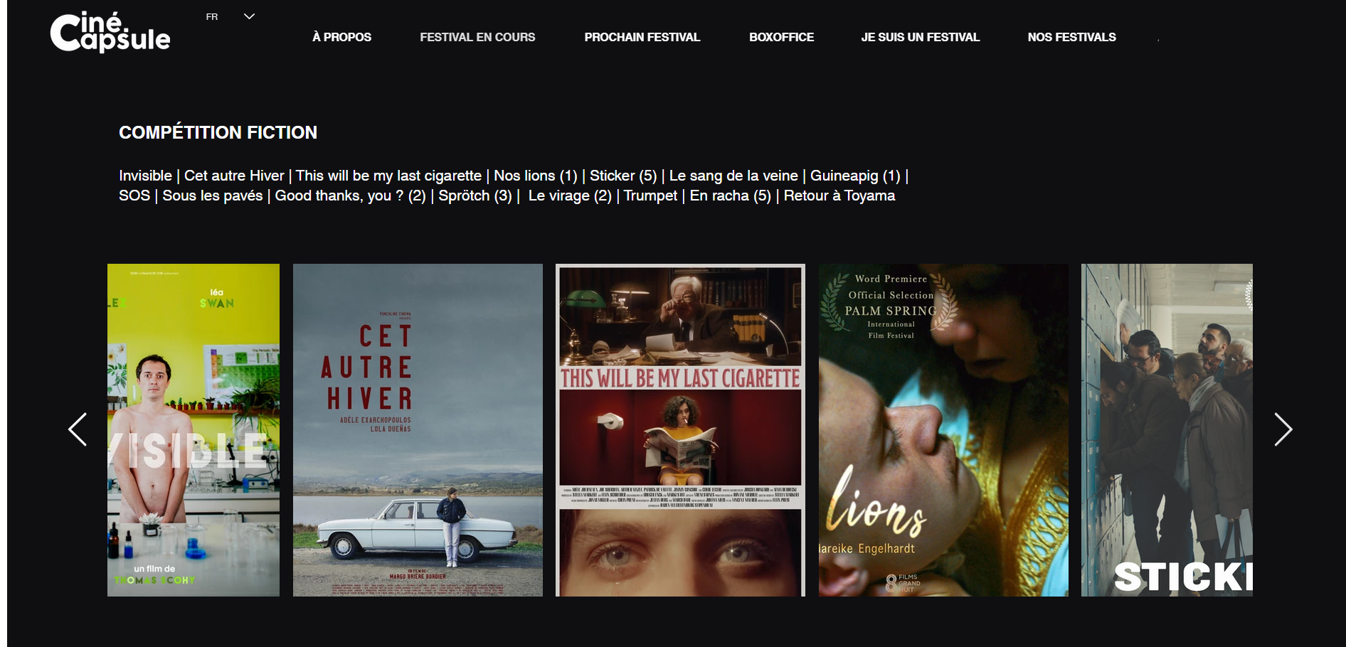 Bilan : au jeu des pronostics personnels (probablement mauvais !), votre serviteur a un gros faible pour Cet autre hiver, SOS et Good thanks, you ?