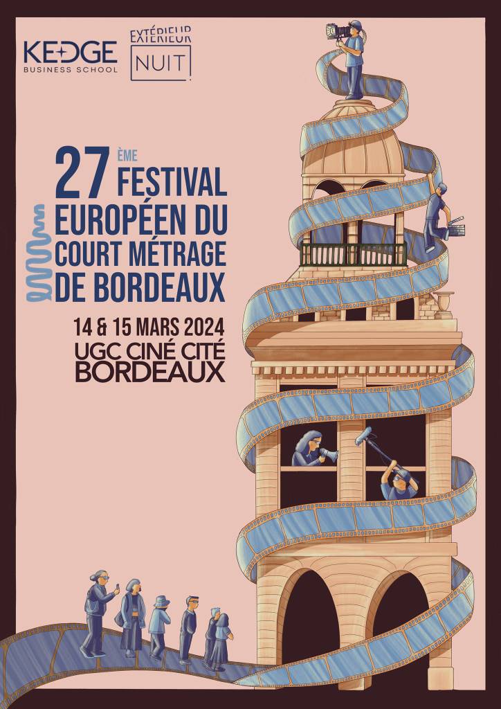 Le Festival Européen du Court Métrage de Bordeaux (dont j’ai l’honneur d’être partenaire presse), organisé par Extérieur Nuit (l’association cinéma de Kedge Bordeaux), vient de dévoiler la superbe affiche de sa 27ème édition, imaginée par l’illustratrice Isis !