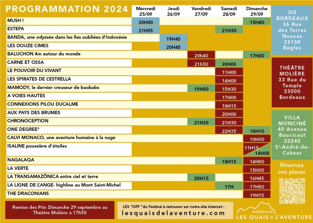 Petit récapitulatif de la programmation avec les dates et les horaires des séances